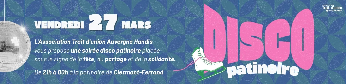 L’Association Trait d’union Auvergne Handis vous propose une soirée disco patinoire placée sous le signe de la fête, du partage et de la solidarité.